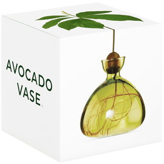 Die Avocado-Vase (15 cm x 15 cm) besteht aus Borosilikatglas. Die Vase enthält ein 36-seitiges Handbuch, das den Benutzer sorgfältig mit detaillierten Schritten zum Keimen des Samens und zum Züchten der Avocadopflanze anleitet. Das Handbuch enthält nützliche Tipps und Ratschläge zu den Themen Wasser, Licht, Beschneiden und Umtopfen. Sowie historische Referenzen und künstlerische Inspirationen. Die Verpackung ist auf recyceltem Karton gedruckt.