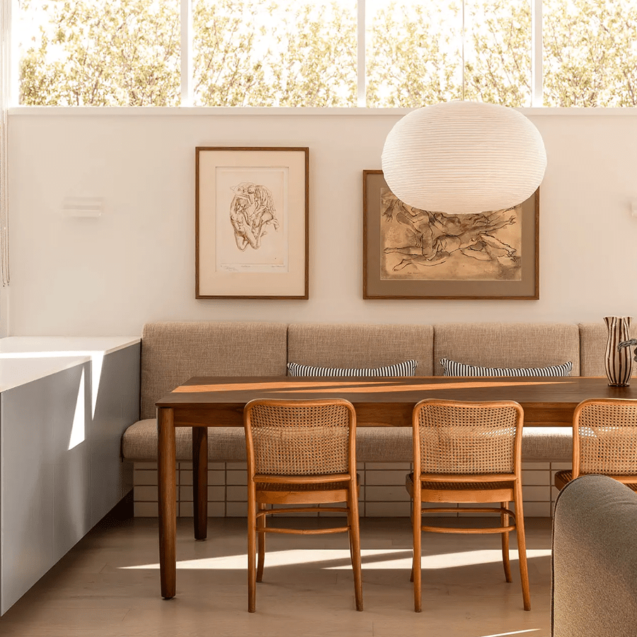 For best results, we recommend using a warm-toned bulb instead of a white one. Warm lighting enhances the natural texture and tone of our shades, creating a softer, more inviting ambiance. Linen fabric with a rattan frame. No wire frame required; shade settles into shape after a few days.